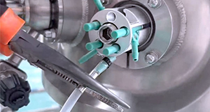 4. 分離取樣袋:用鉗子夾緊金屬圓環,剪斷並密封取樣袋。