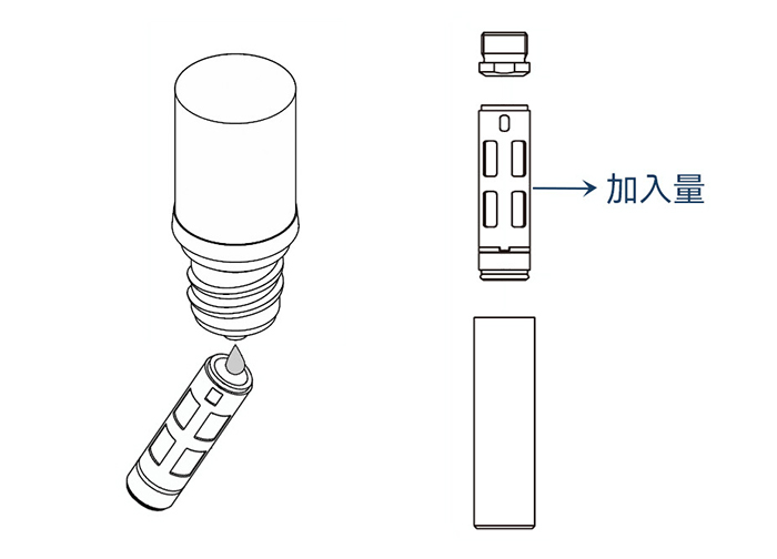 ③ 輕輕擠壓電解液瓶,使電解液緩慢的流入膜內;
