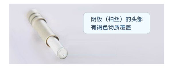 這種情況下,將內電極的頭部對著光源觀察陰極,可以看到陰極表麵顯露出黑色。可使用標號1000目以上的砂紙在鉑絲頭部輕輕打磨數次,至鉑絲表麵發亮即可。切不可過度打磨,否則會使內電極頭部受損。