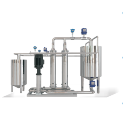 一個或多個模塊被合並到一個過濾係統中。循環泵提供循環流量,進料泵提供過濾壓力。控製流量或壓力,濾液從模塊中流出。